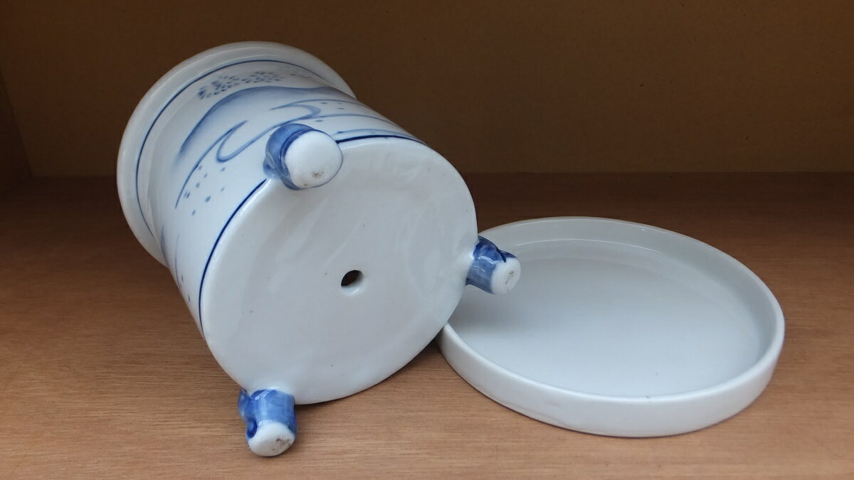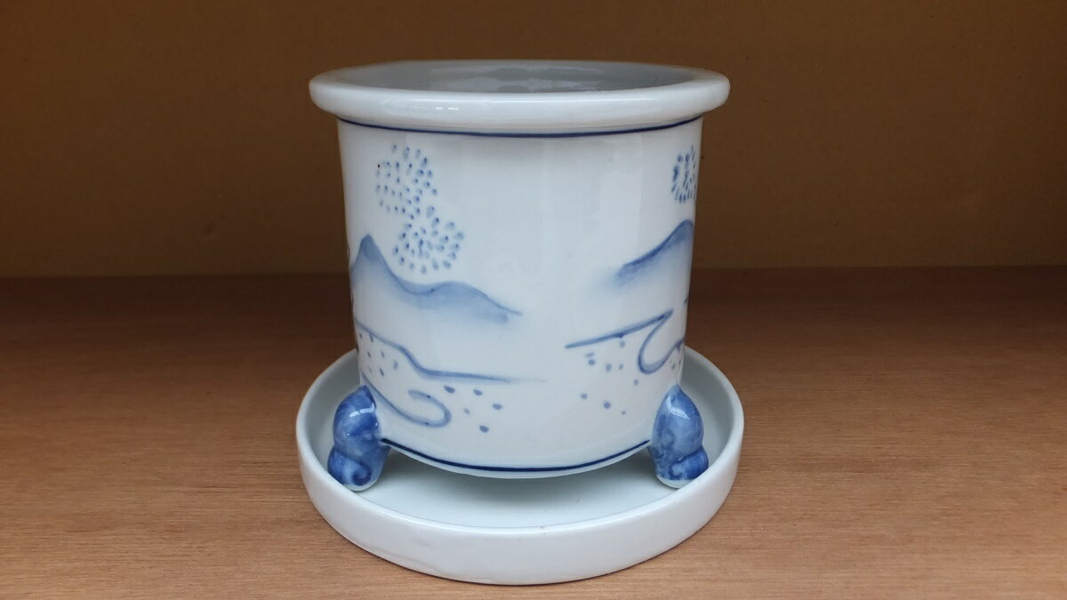 中国広東省梅州にて作られた盆栽鉢 磁器製で呉須による染付鉢。